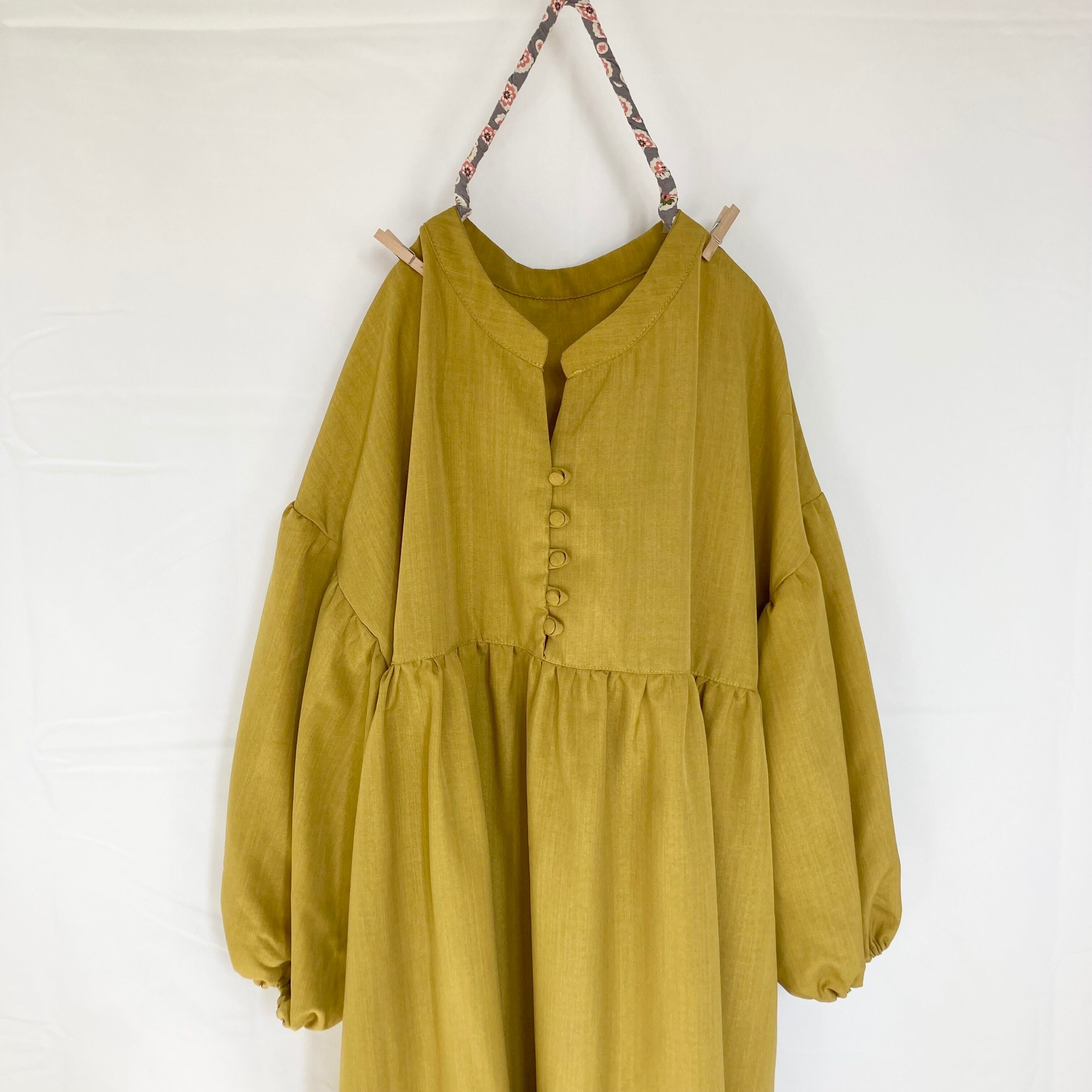 -color 黄緑・白 -size 120 -material 綿 100% -feature 長袖・ぽわん袖・背中ボタン・薄手 *画像のサイズを必ずご確認ください*