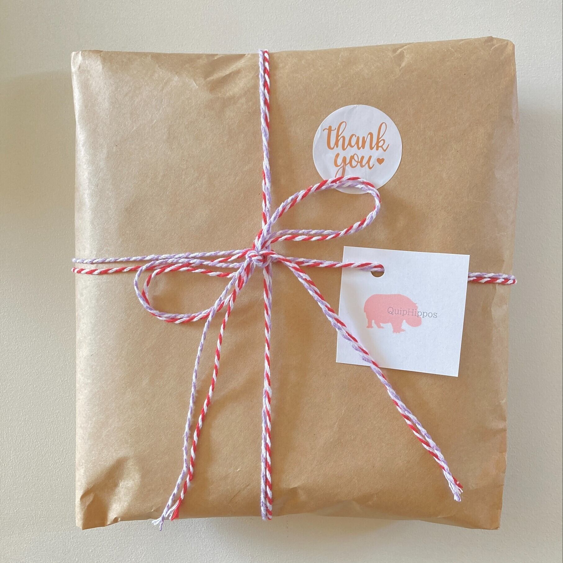 QuipHipposでは環境に配慮し最低限の包装で商品を発送させていただきます。通常はクラフト紙または薄紙でお包みします。